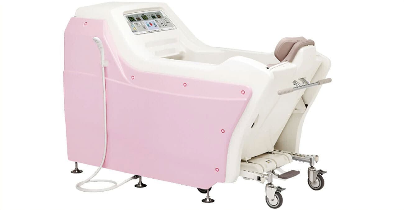特殊浴槽(介護浴槽)とは、寝たきりの人や座位姿勢の保持が難しい人などが、安心して入浴できるように設計された特殊な浴槽のことです。等施設ではどんな身体機能レベルの利用者様でも入浴できる特殊浴槽を導入してます。